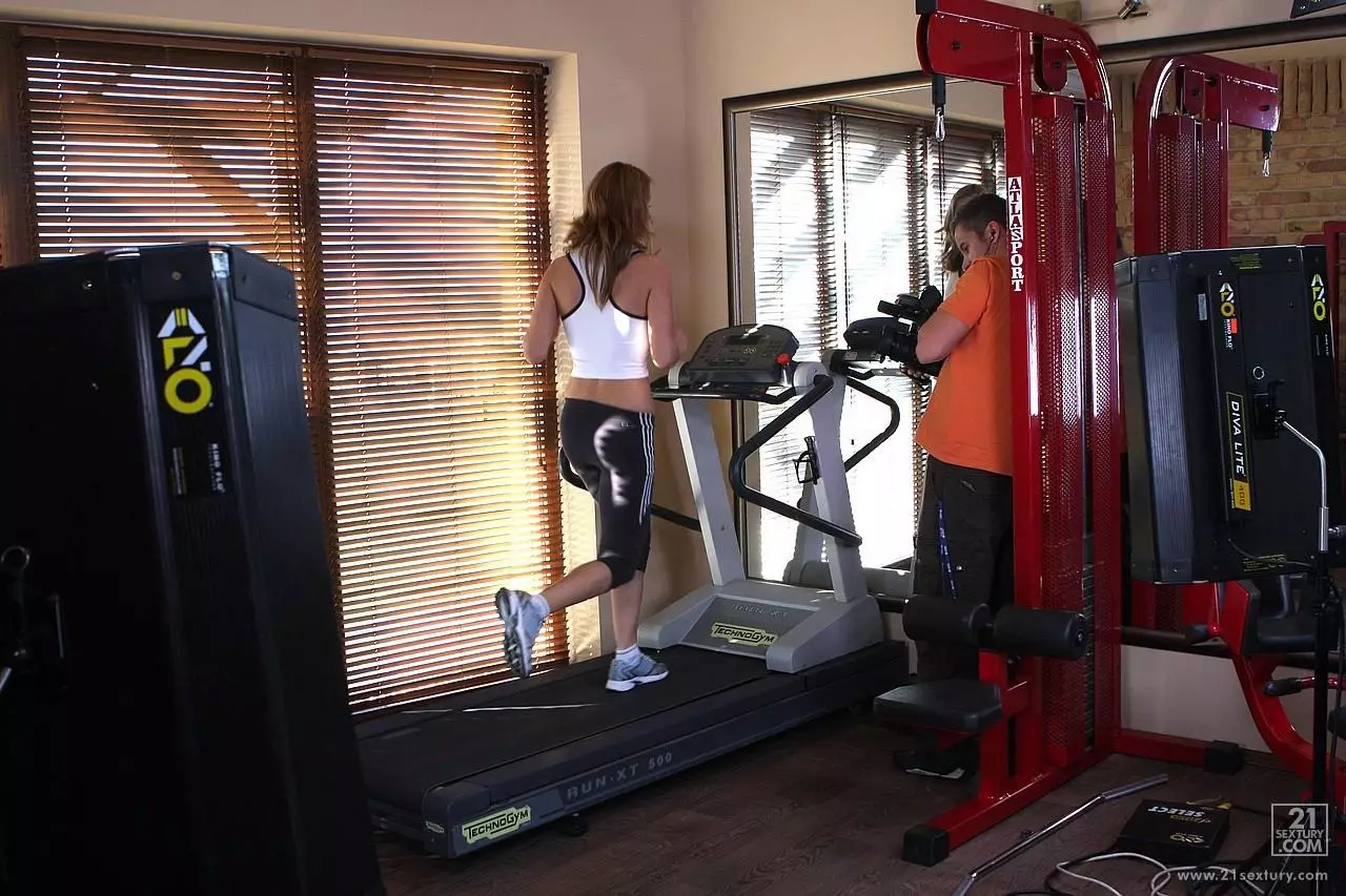 Подглядываем, как два спортсмена делят бритую киску Demi C прямо в спортзале — Demi C
