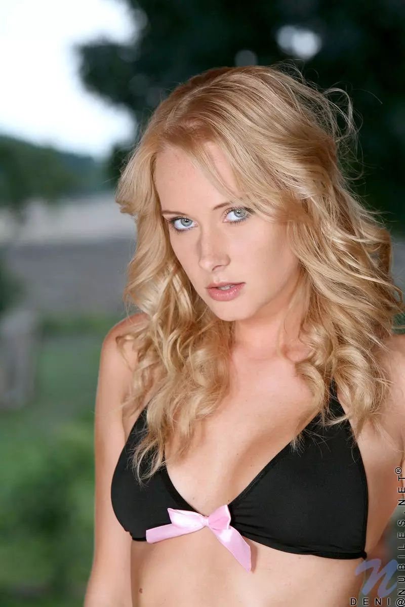 Очаровательная голубоглазая блондинка Deni Nubiles снимает черное бикини на ранчо — Deni Nubiles