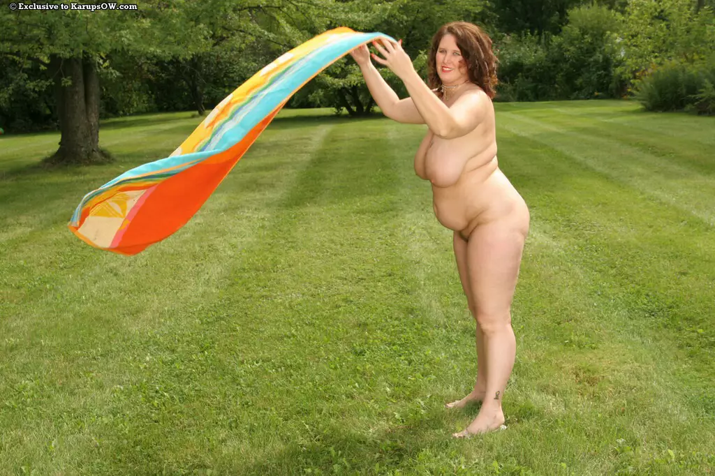 Большегрудая толстушка Dusty Rose обнажается и выставляет свои кустики на свежем воздухе на травке — Dusty Rose