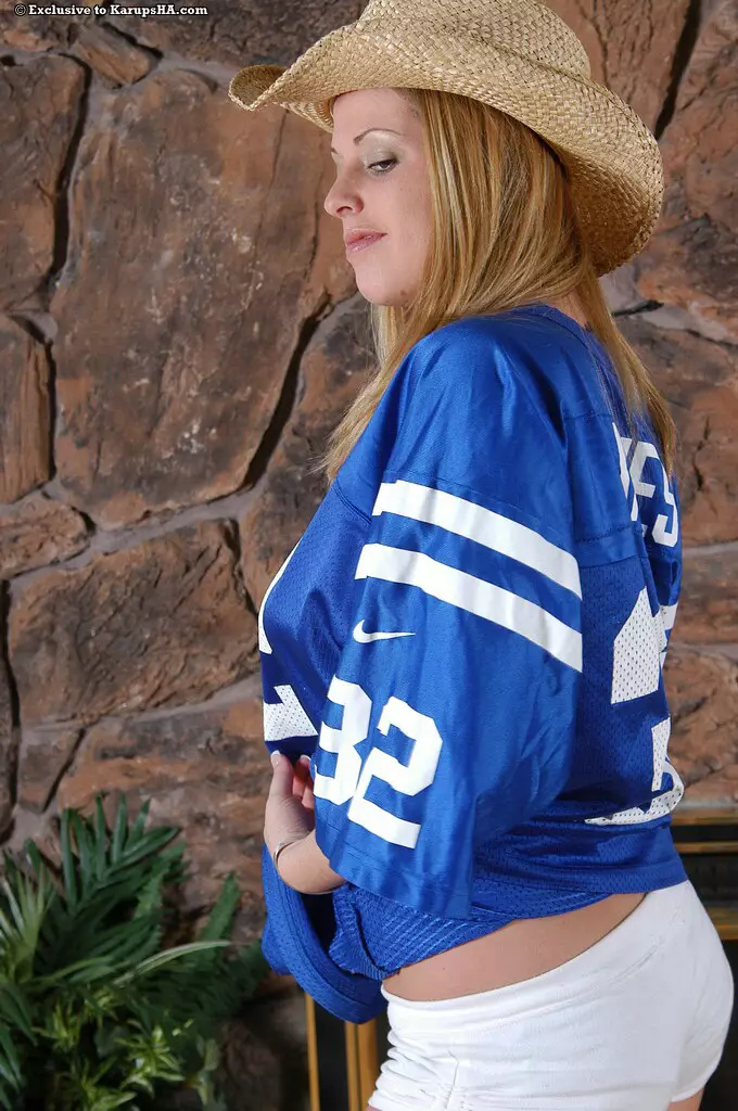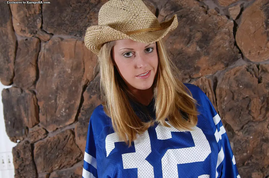 Грудастая красотка в шляпе Ebin Emerson скинула голубые кружевные трусики у камина — Ebin Emerson