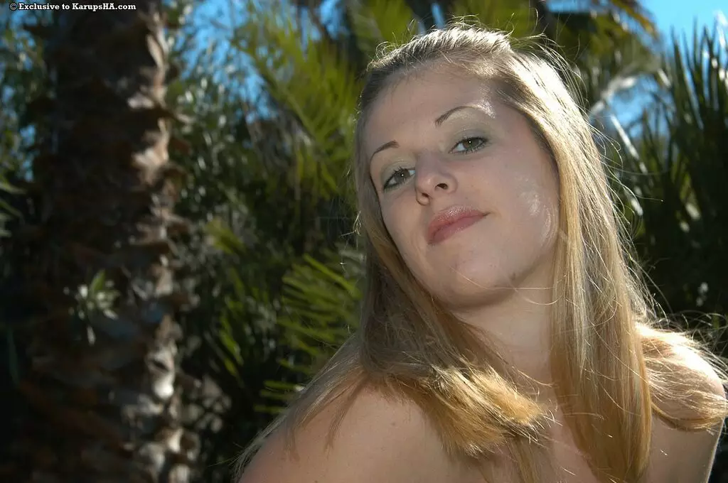 Сексуальная детка в очках Ebin Emerson показывает сочную грудь и гладкую киску под солнцем — Ebin Emerson