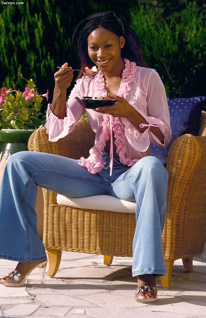 Красотка Ebony сексуально позирует на природе в чем мать родила и мастурбирует с дилдо — Ebony