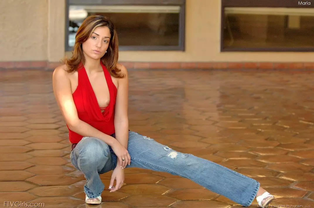 Elena Rivera с сочной попкой и сексуальной, ухоженной киской снимает голубые джинсы и красные трусики — Elena Rivera