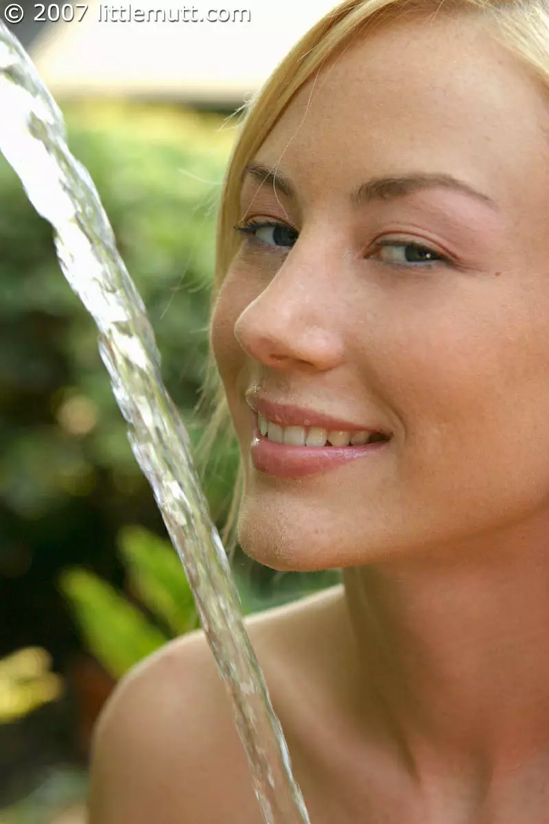 Худая блондинка с бритой киской Erin Littlemutt развлекается с водой на свежем воздухе — Erin Littlemutt