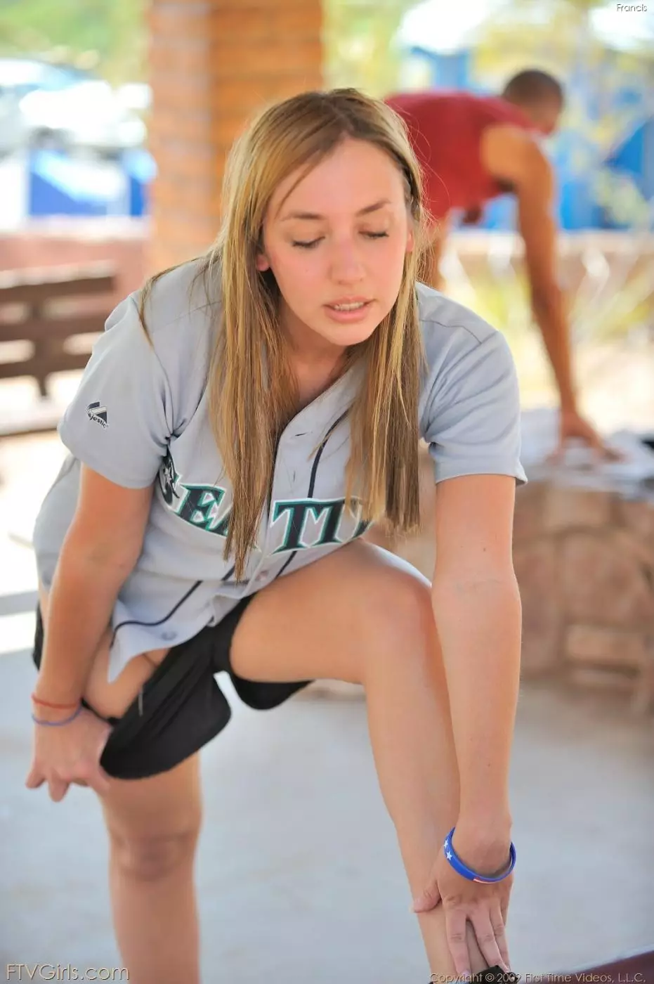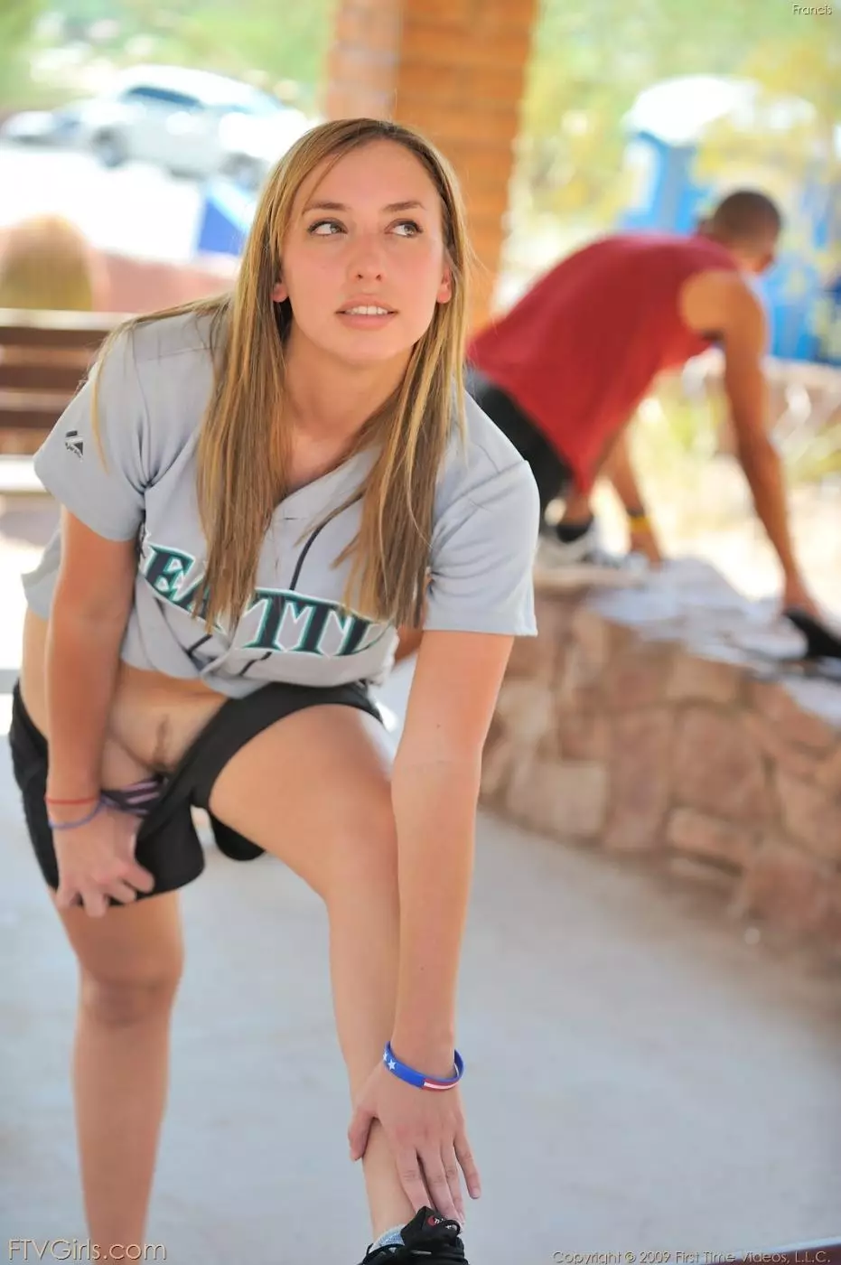 Спортивная девушка в форме Francis FTV выставляет на показ свою грудь и выбритую киску на публике — Francis FTV