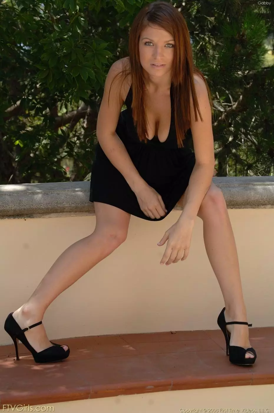 Грудастая милашка Gabby FTV снимает черное платье на улице и двигает зеленой игрушкой в своей аккуратной киске — Gabby FTV G / Gabby FTV |