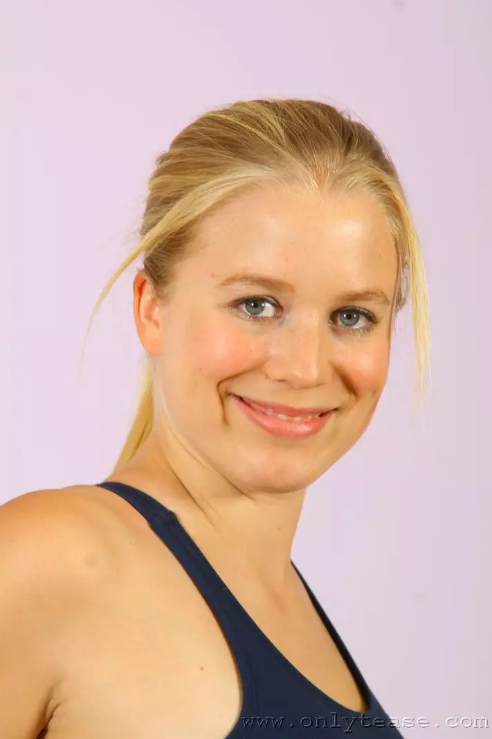 Спортивная блондинка с невероятно большой натуральной грудью Gabriella T полностью раздевается — Gabriella T