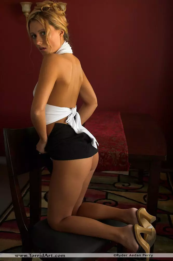 Детка с маленькой попой, бритой киской Ginger Lee стягивает свои стринги — Ginger Lee