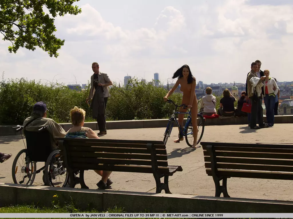 Игривая брюнетка Gwen A чувствует себя свободно на улице, когда катается на велосипеде обнаженной — Gwen A