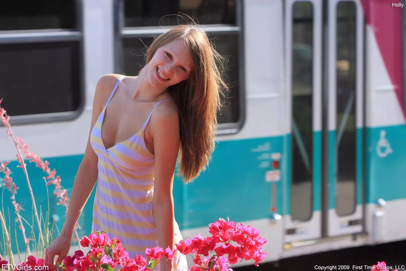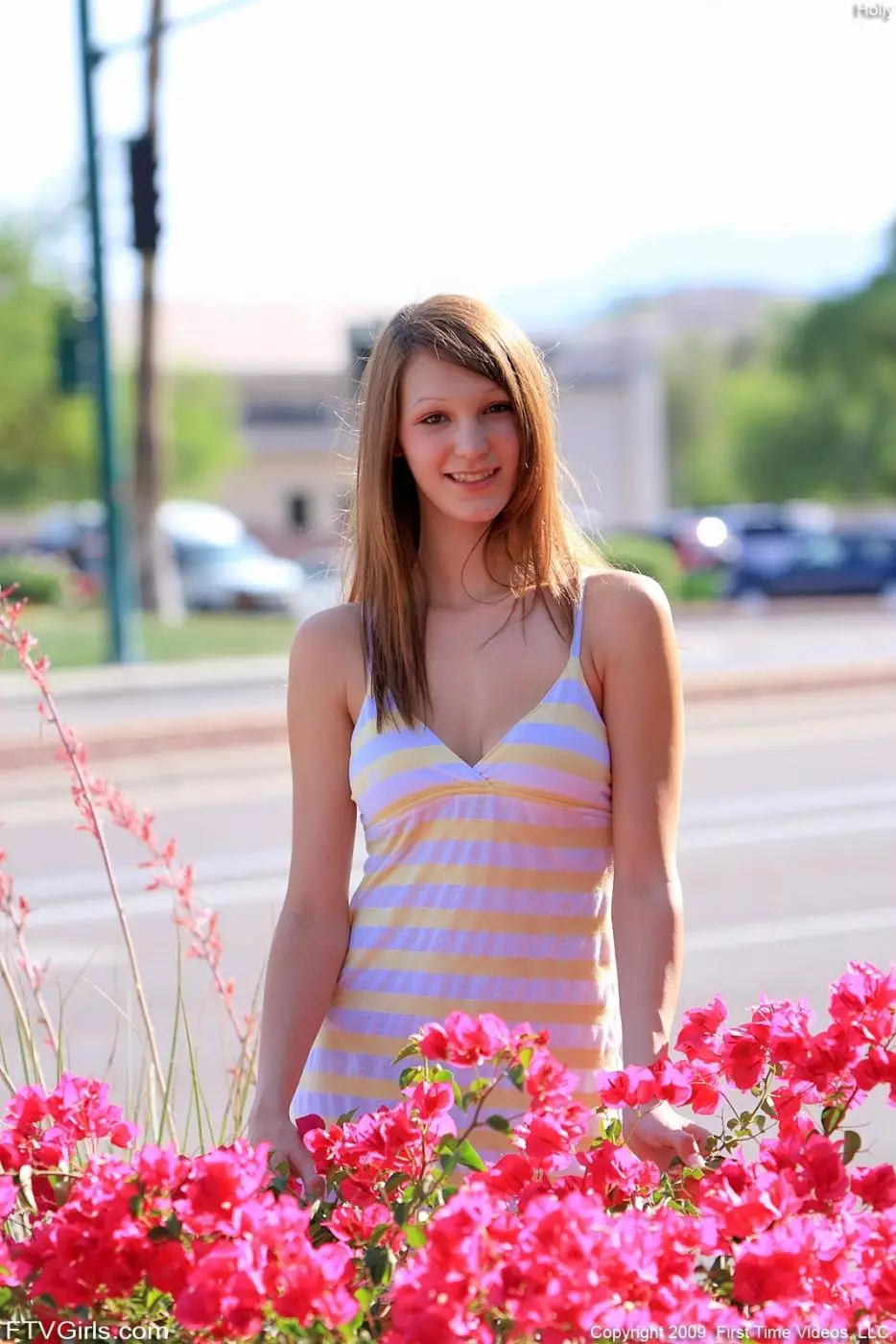 Свежая малышка Holly Michaels показывает свои сиськи и попку, прогуливаясь по улице — Holly Michaels