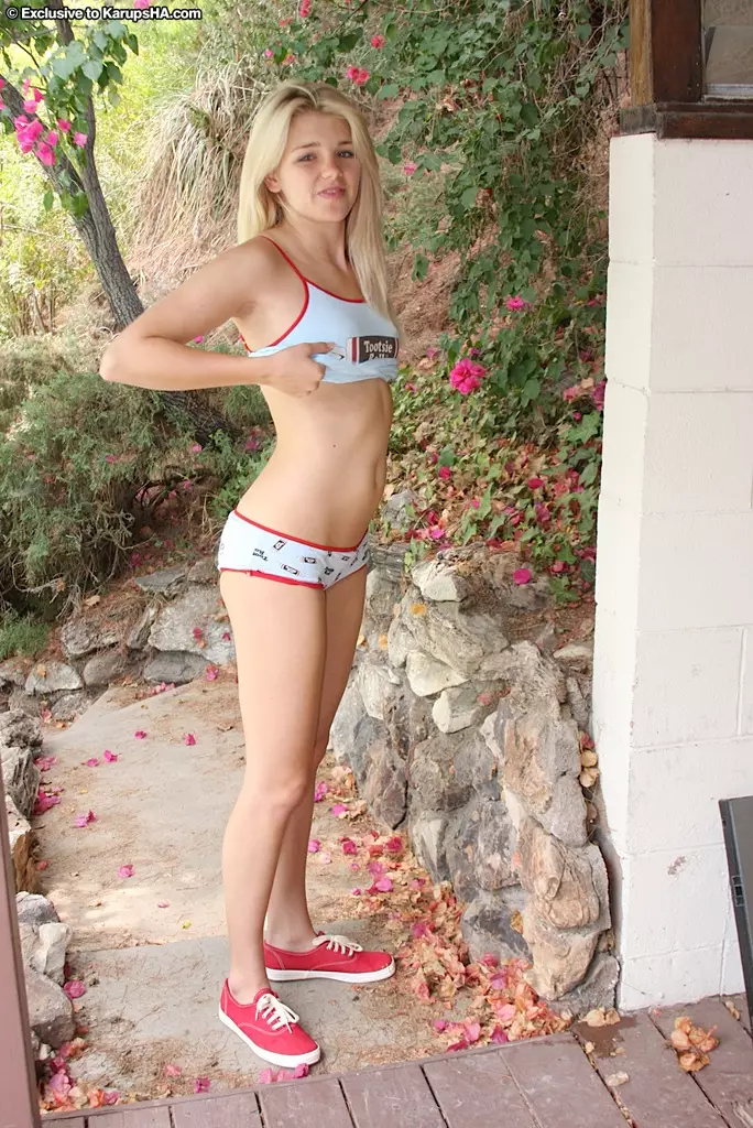 Хрупка блондинка-подросток с крошечной грудь и попкой Holly Van Hough раздевается на открытом воздухе — Holly Van Hough