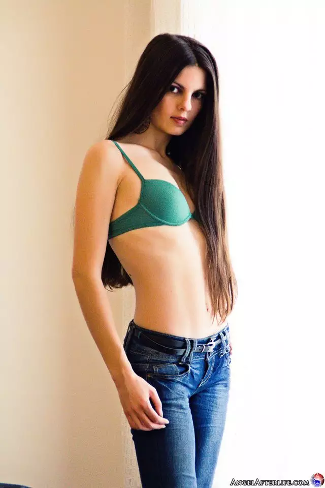 Чувственная брюнетка Ilona Afterlife снимает джинсы и топ и танцует в одном белье — Ilona Afterlife