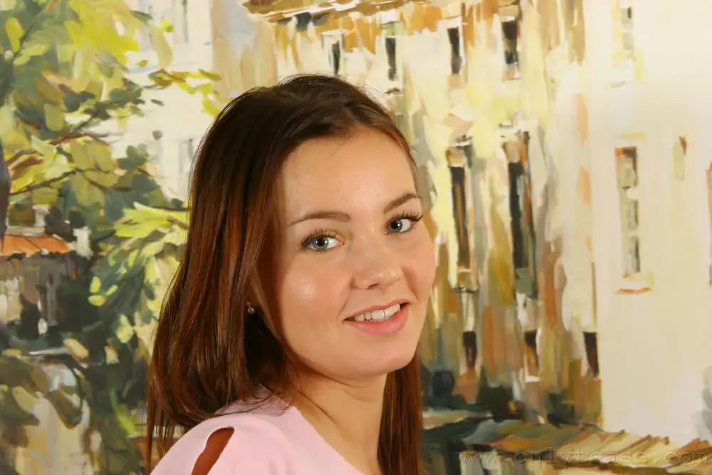 Плоскогрудая кошечка Irena Onlytease любит позировать в фиолетовых кружевных трусиках и белых носочках — Irena Onlytease