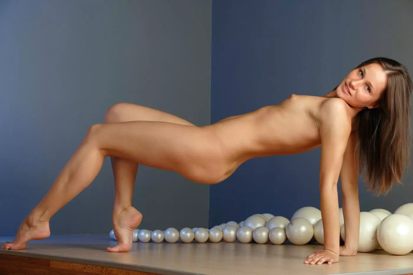 Когда голая брюнетка Irina Bruni позирует, ты можешь разглядеть манящую киску между скрещенных ног — Irina Bruni