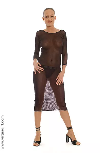 Брюнетка в просвечивающем платье и сексуальных трусиках Jamie Hunger готова показать свою киску — Jamie Hunger