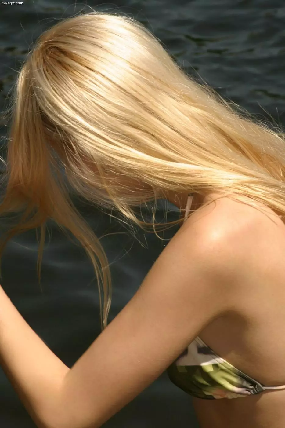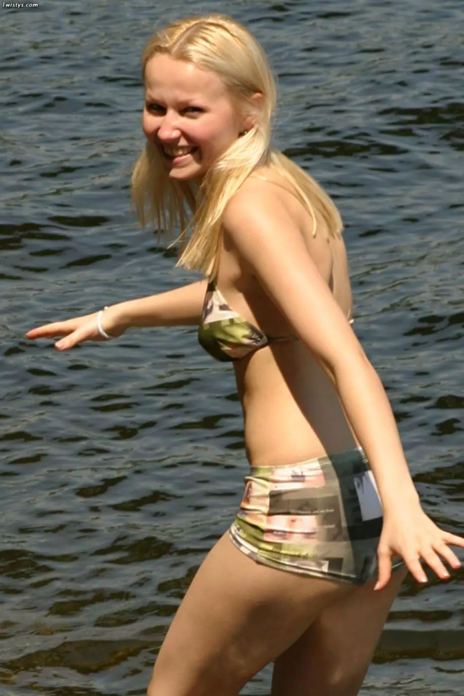 Топлесс-блондинка с упругой попкой Kali Twistys грязно играет в воде, на природе — Kali Twistys