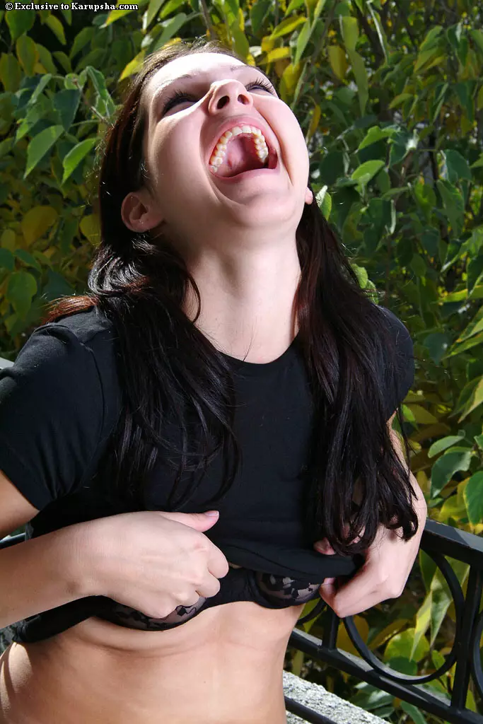 Классная брюнетка Kathleen Kruz засветила грудь и выставила голую киску на свежем воздухе — Kathleen Kruz