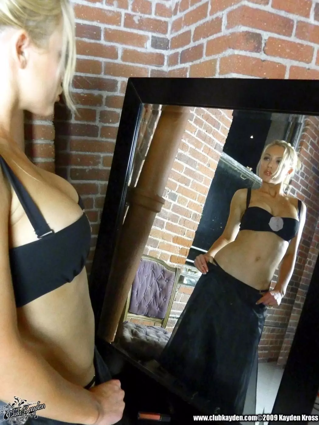 Девочка с идеальным телом Kayden Kross раздевается до нейлоновых чулочков перед зеркалом — Kayden Kross