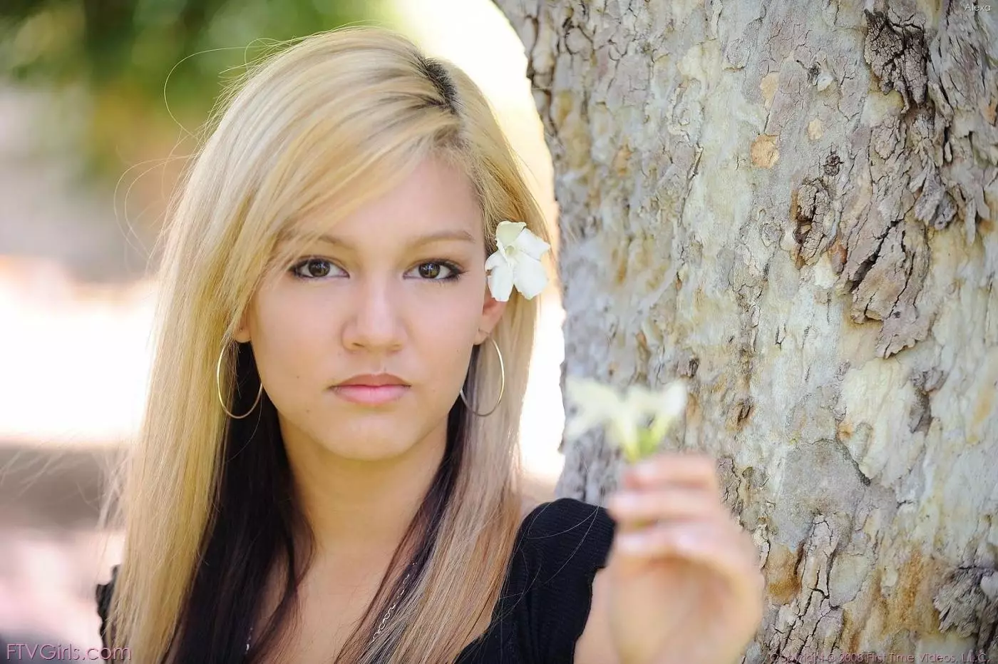 Молоденькая девка Alexa FTV Kimberly Kato в милой юбочке и узкой футболке показывает свои торчащие сиськи и бритую пизду на свежем воздухе. — Kimberly Kato