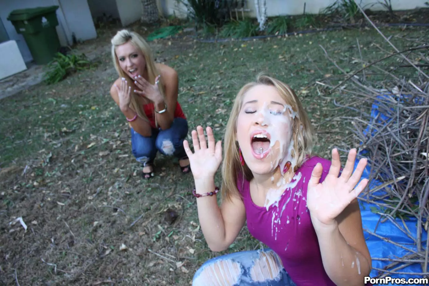 Все лицо Kimberly Kiss покрыто спермой после того, как она и ее подруга потрудились над твердым членом — Kimberly Kiss