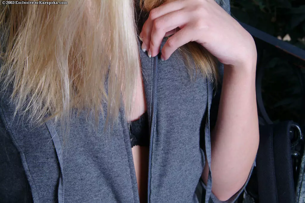 Негодная детка в синих хлопковых трусиках Kira Beckam любит показывать свою безволосую киску перед камерой — Kira Beckam