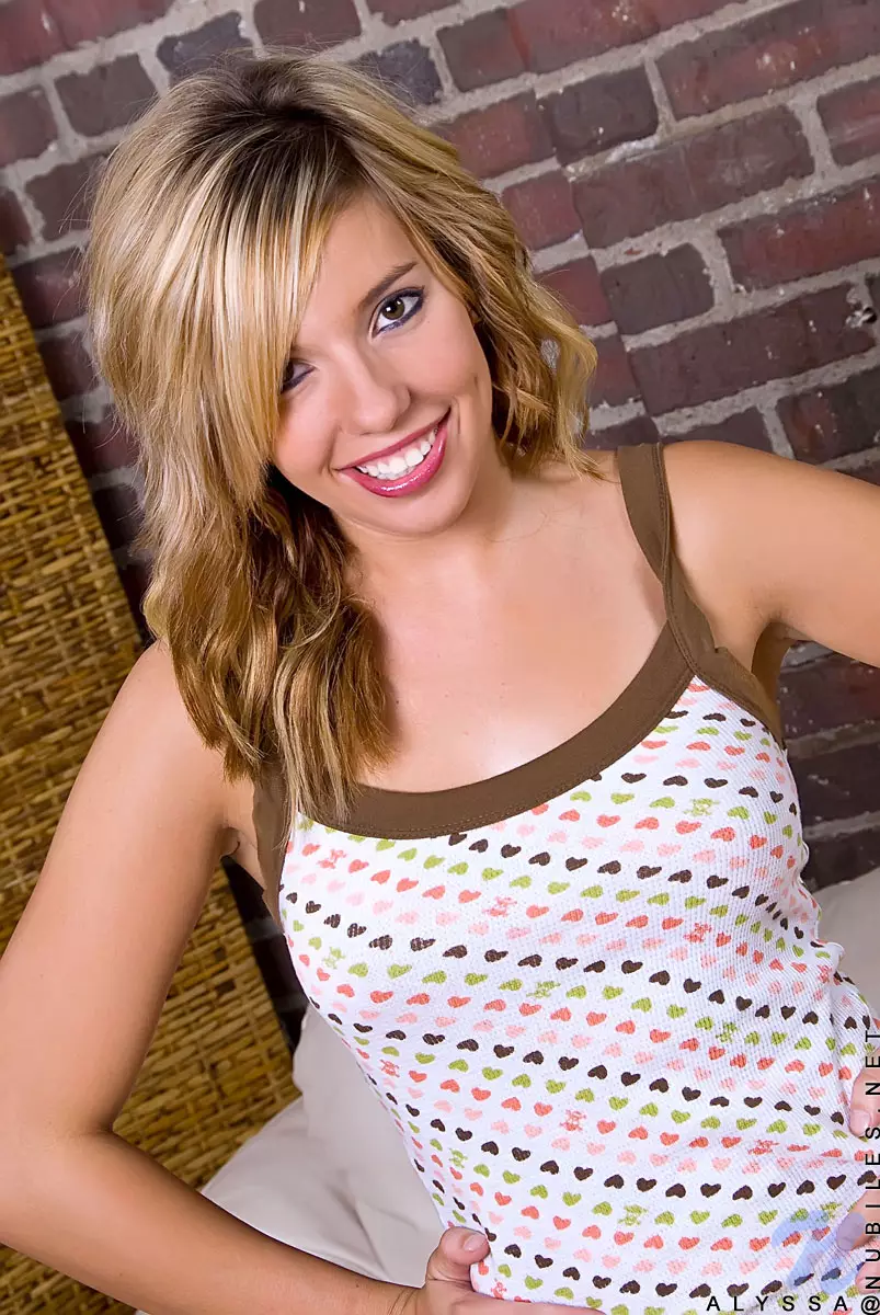 Игривая красотка с гладкой киской Kirra Kiss стягивает синие джинсы и бежевые трусики — Kirra Kiss