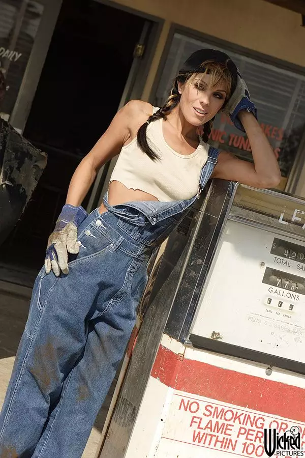 Горячая брюнетка-механик с косичками Kirsten Price сексуально позирует на заправке — Kirsten Price