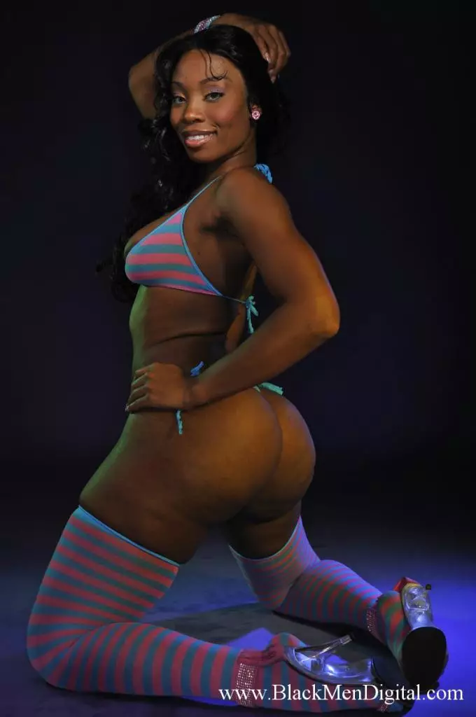 Шоколадная малышка La Starya в бикини и чулках показывает свою большую округлую попу в темноте — La Starya