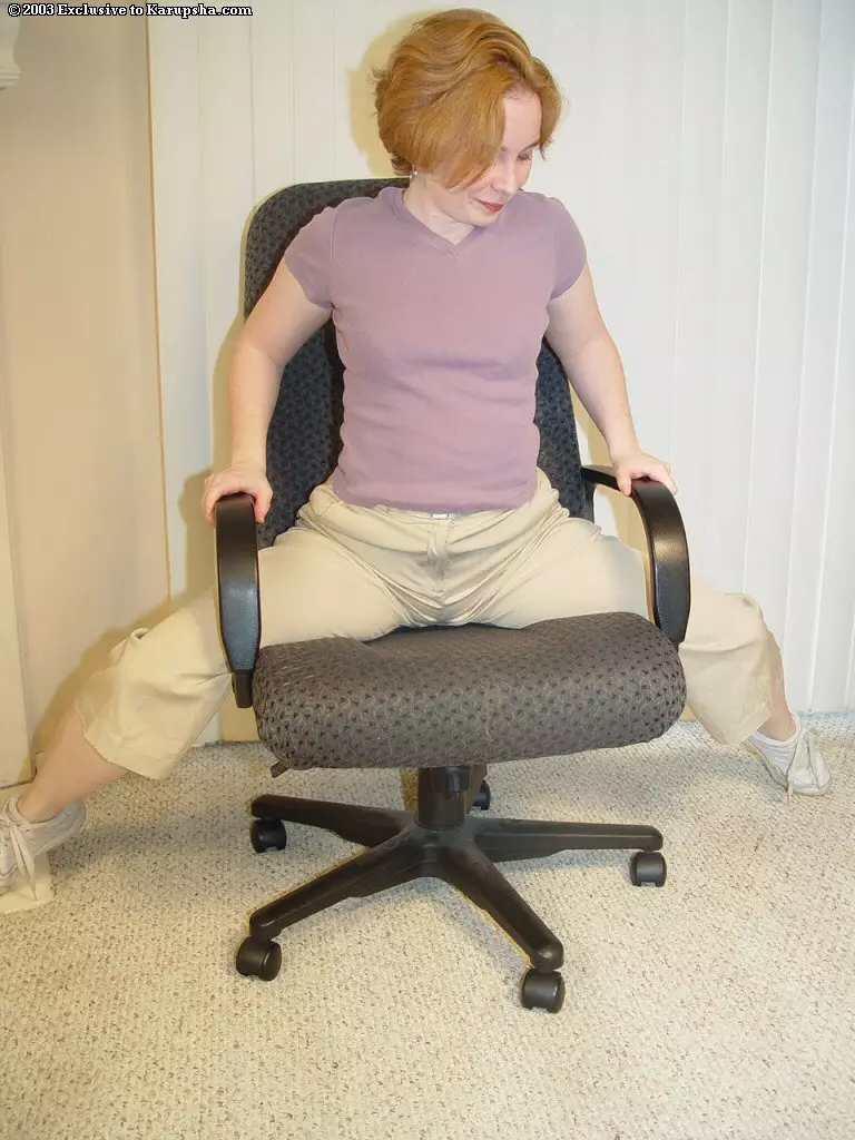 Игривая рыжая Lucy Knight показала кустики после того как стянула белые трусики на кресле — Lucy Knight