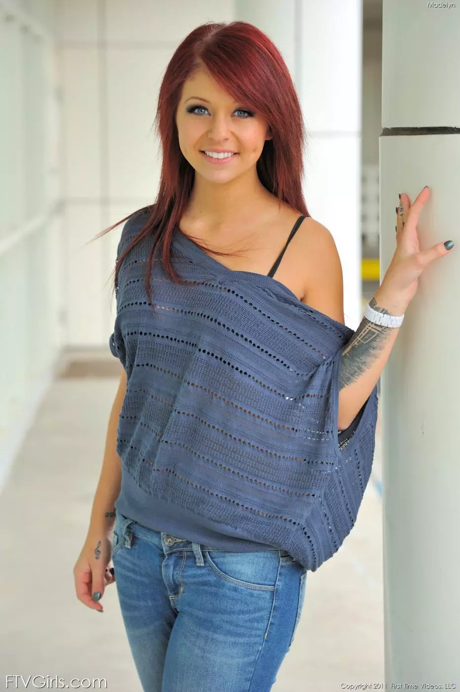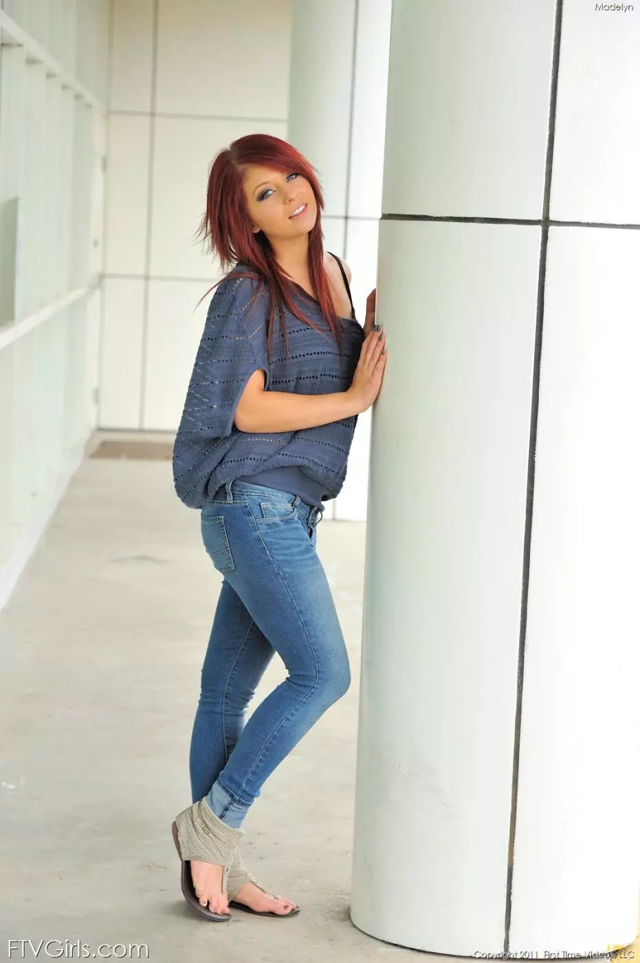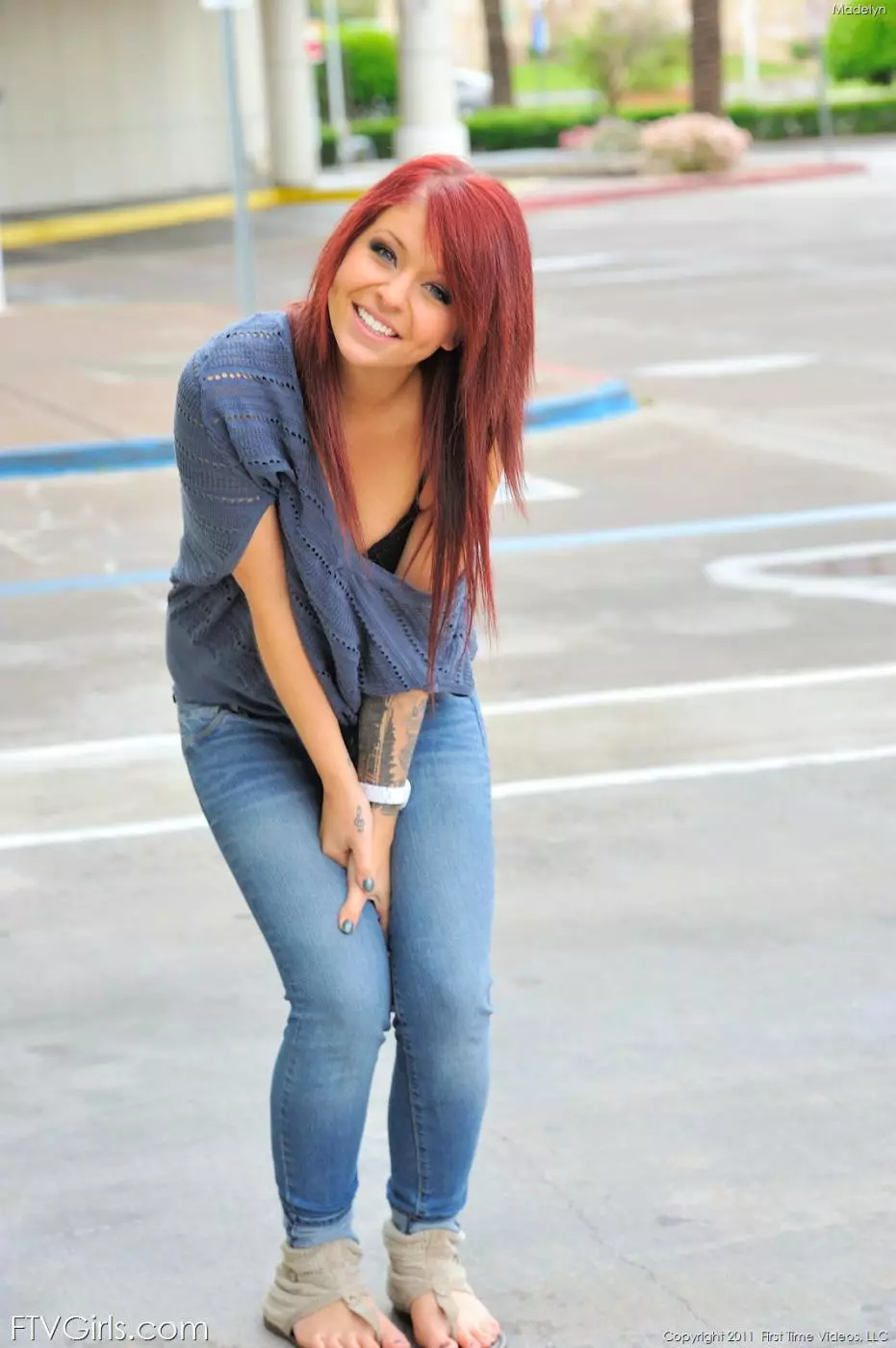 Рыжая малышка Madelyn Monroe снимает джинсы и показывает гладкую киску — Madelyn Monroe