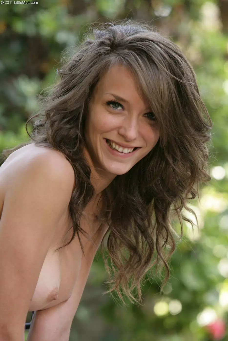 Малышка шатенка с выбритой киской Malena Morgan позирует полностью голой на заднем дворике — Malena Morgan
