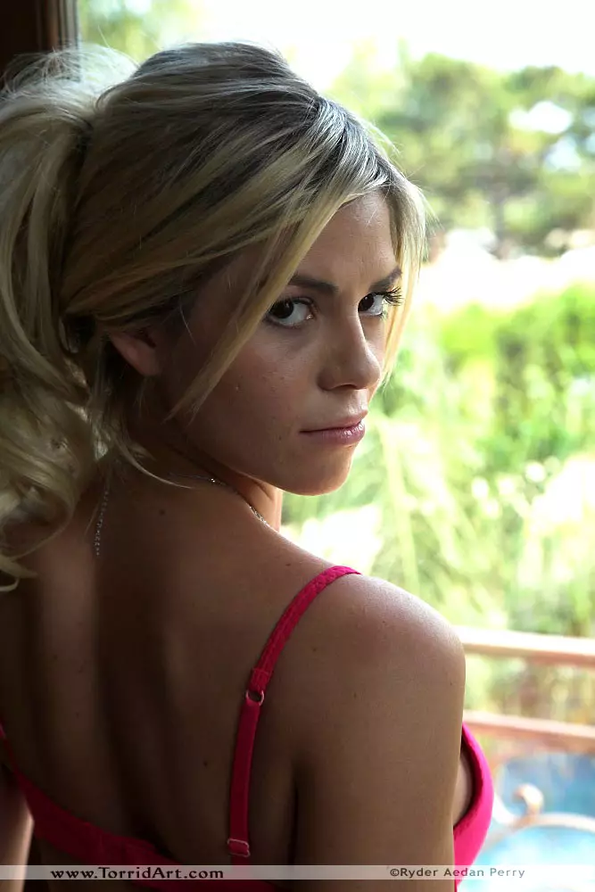 Блондиночка с торчащими сиськами, попкой-яблочком и стриженным кустиком - Marlie Moore, раздевается — Marlie Moore