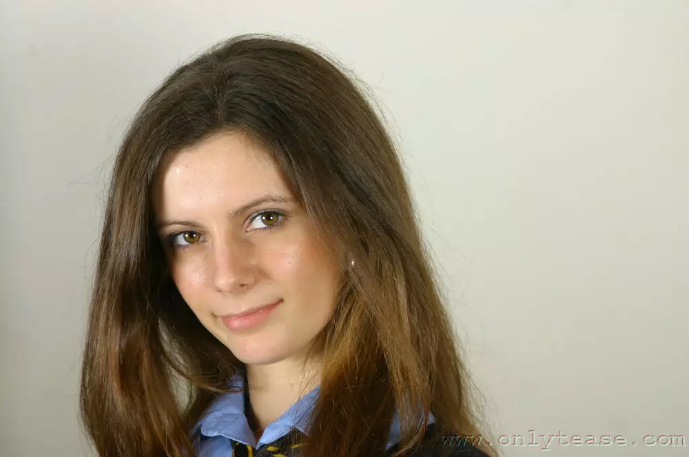 Студентка Martina Onlytease в униформе и черных трусиках расстегнула блузку чтоб показать клевые сиськи — Martina Onlytease
