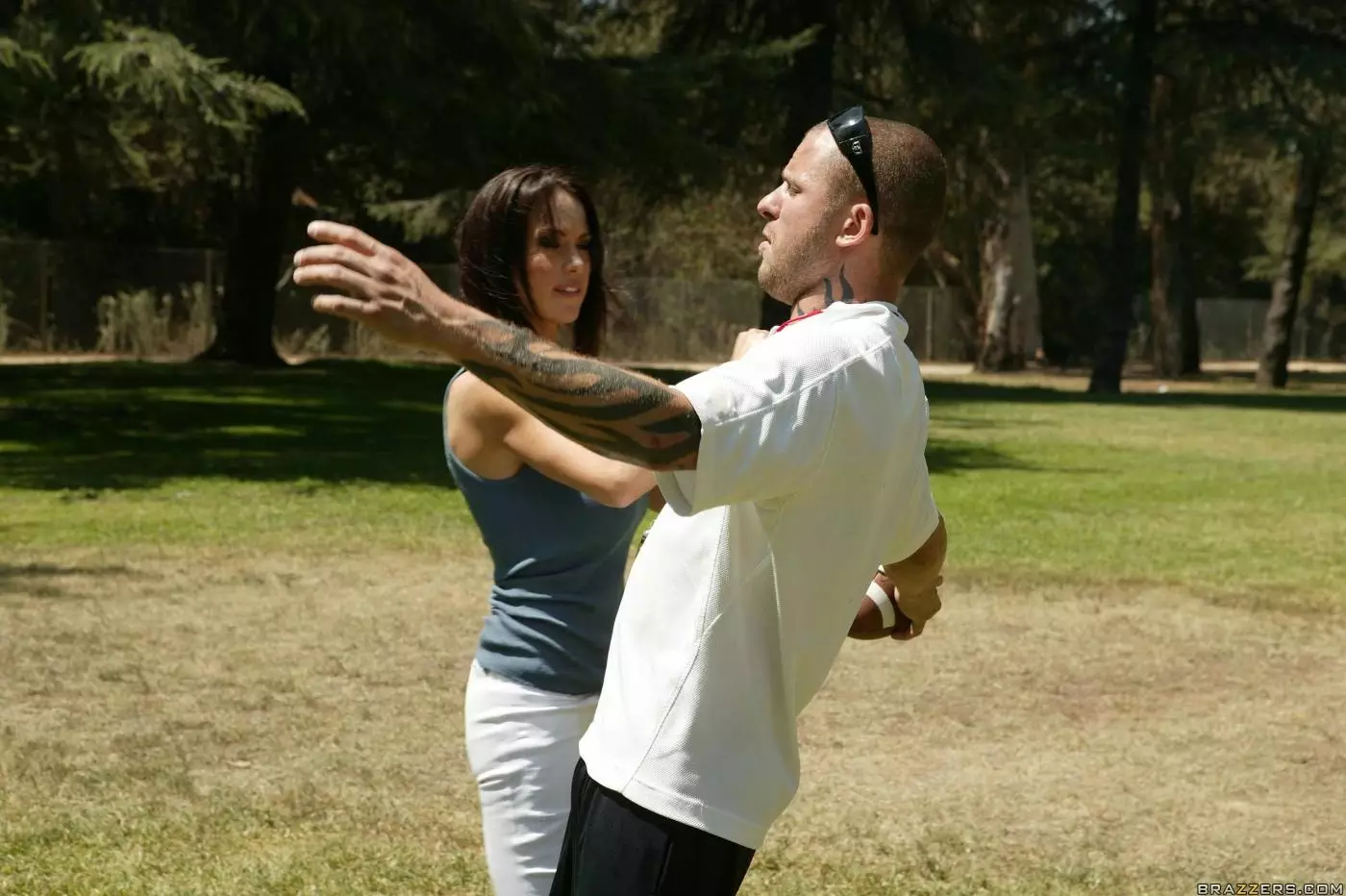 Длинноногая брюнетка с огромными сиськами McKenzie Lee снимает свою форму для игры в регби и трахается — McKenzie Lee