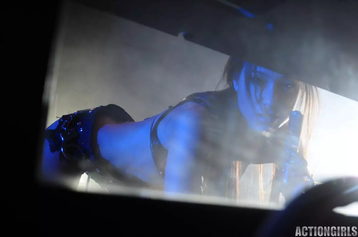 Длинноногая брюнетка с оружием и в сапогах Melissa Mendiny показывает свои прелести — Melissa Mendiny