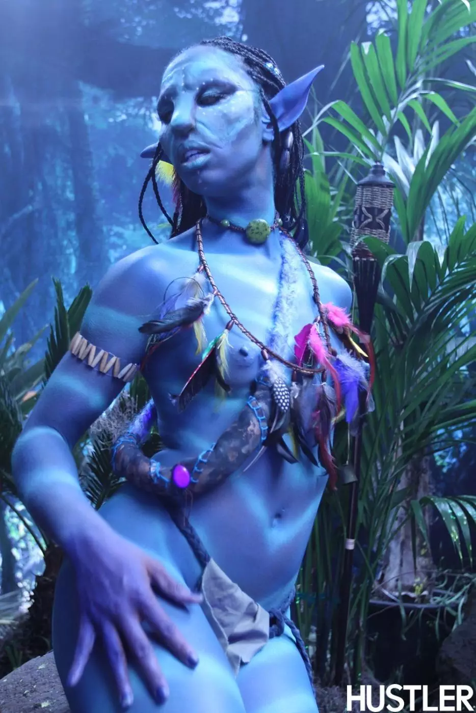 Misty Stone в роли девушки из "Аватара", показывает стоячую грудь и синюю киску — Misty Stone