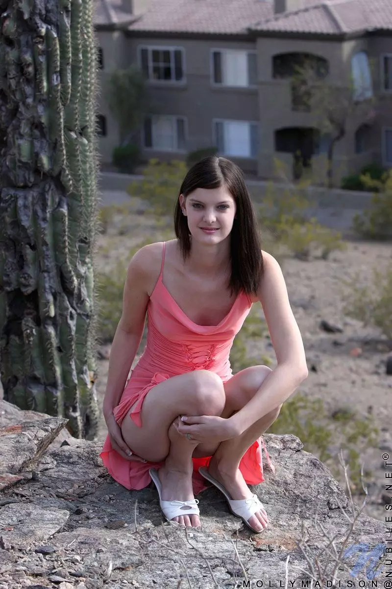 Темноволосая девочка Molly Madison в платье и танго засветила киску и маленькие сисечки во дворе — Molly Madison