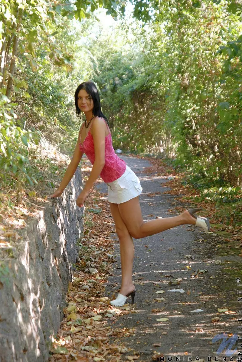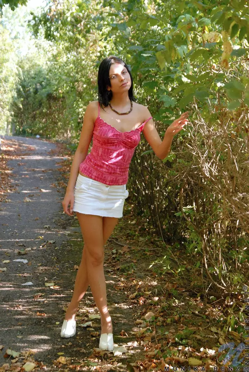 Малышка Monika Benz в белой мини юбке, снимает черные трусики — Monika Benz