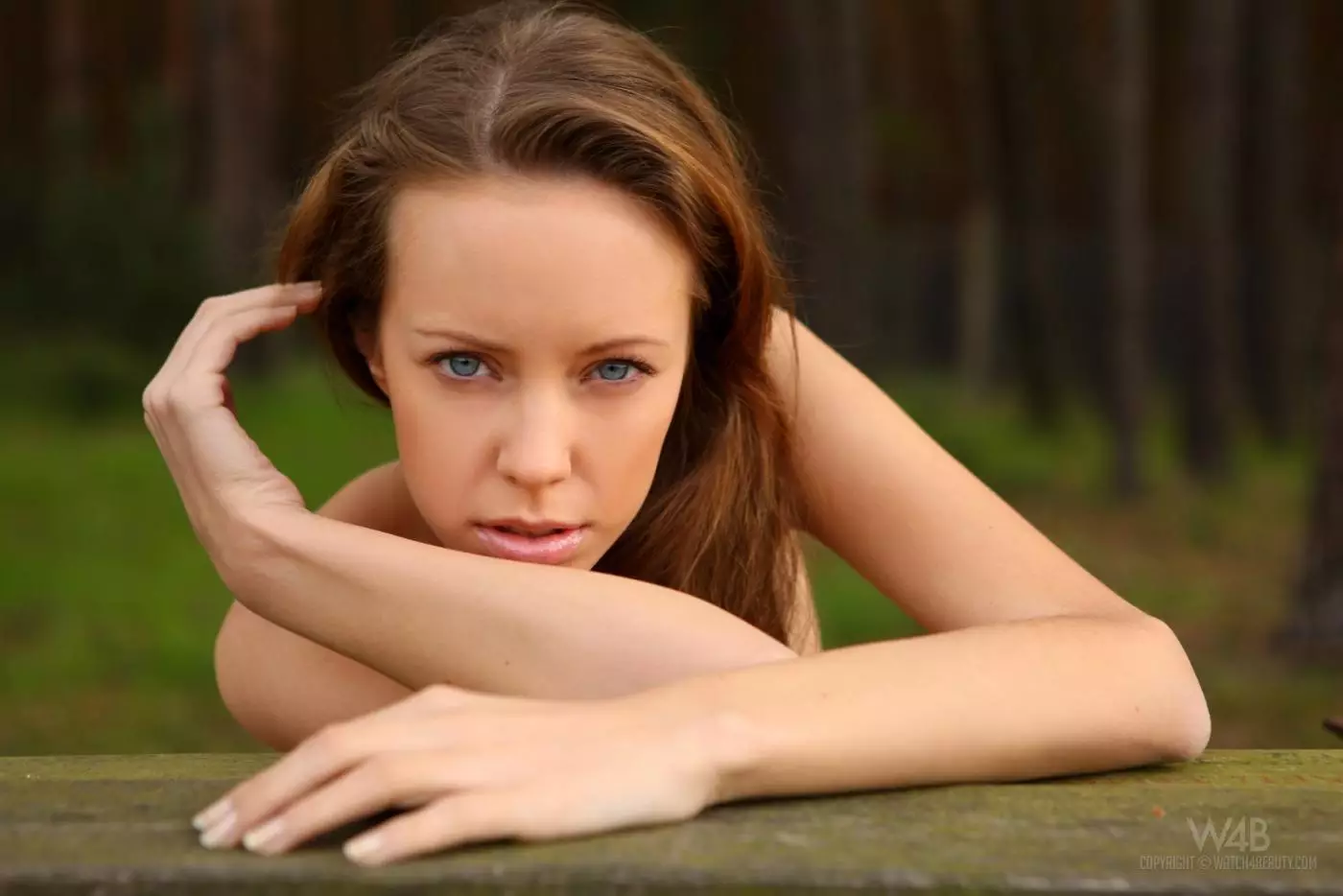 Невероятная длинноногая россиянка Nastya Nubiles позирует обнаженной на лавке в лесу — Nastya Nubiles