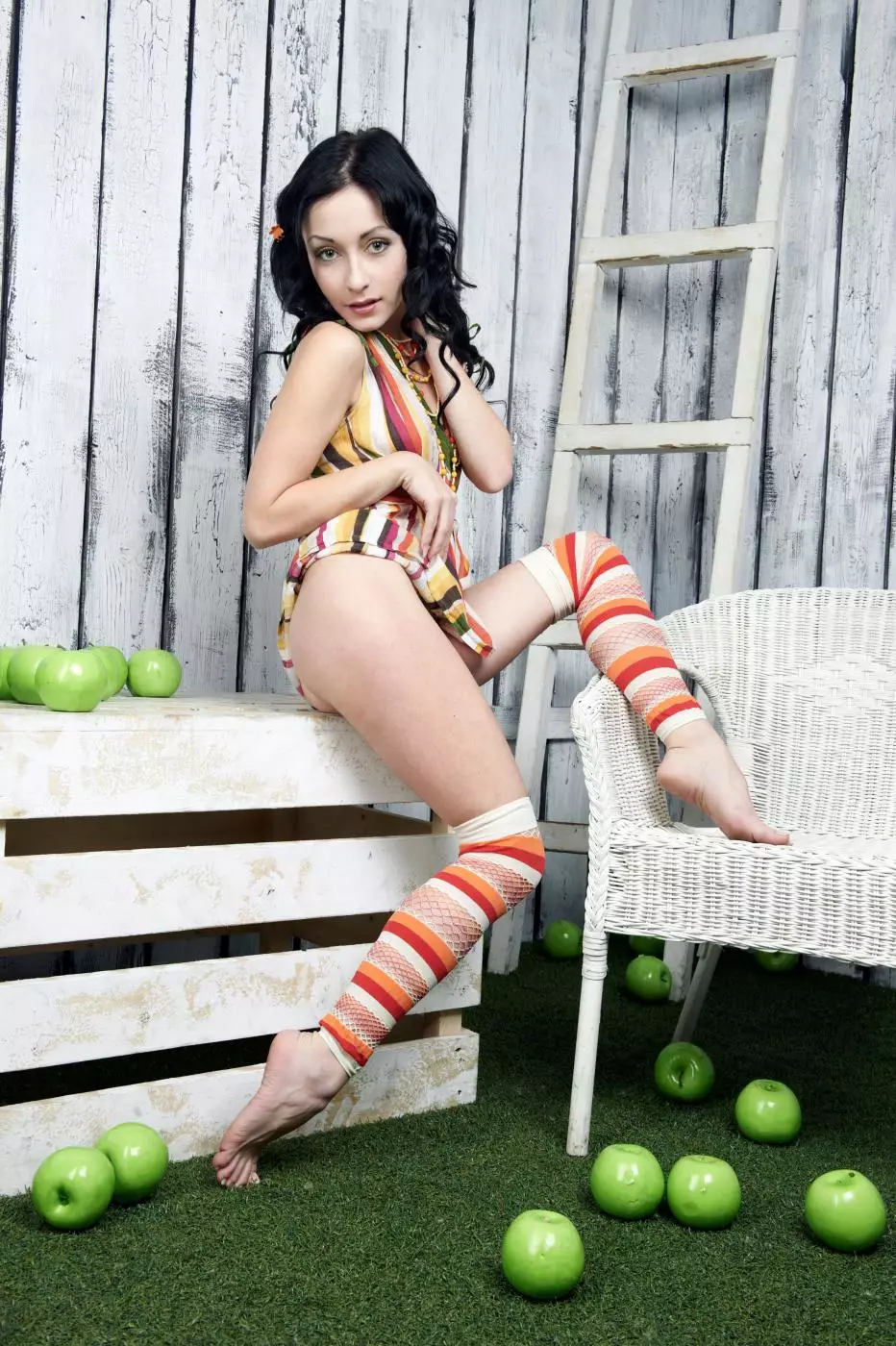 Возбужденная брюнетка Night A соблазнит любого мужчина яблоком, совсем как Ева — Night A