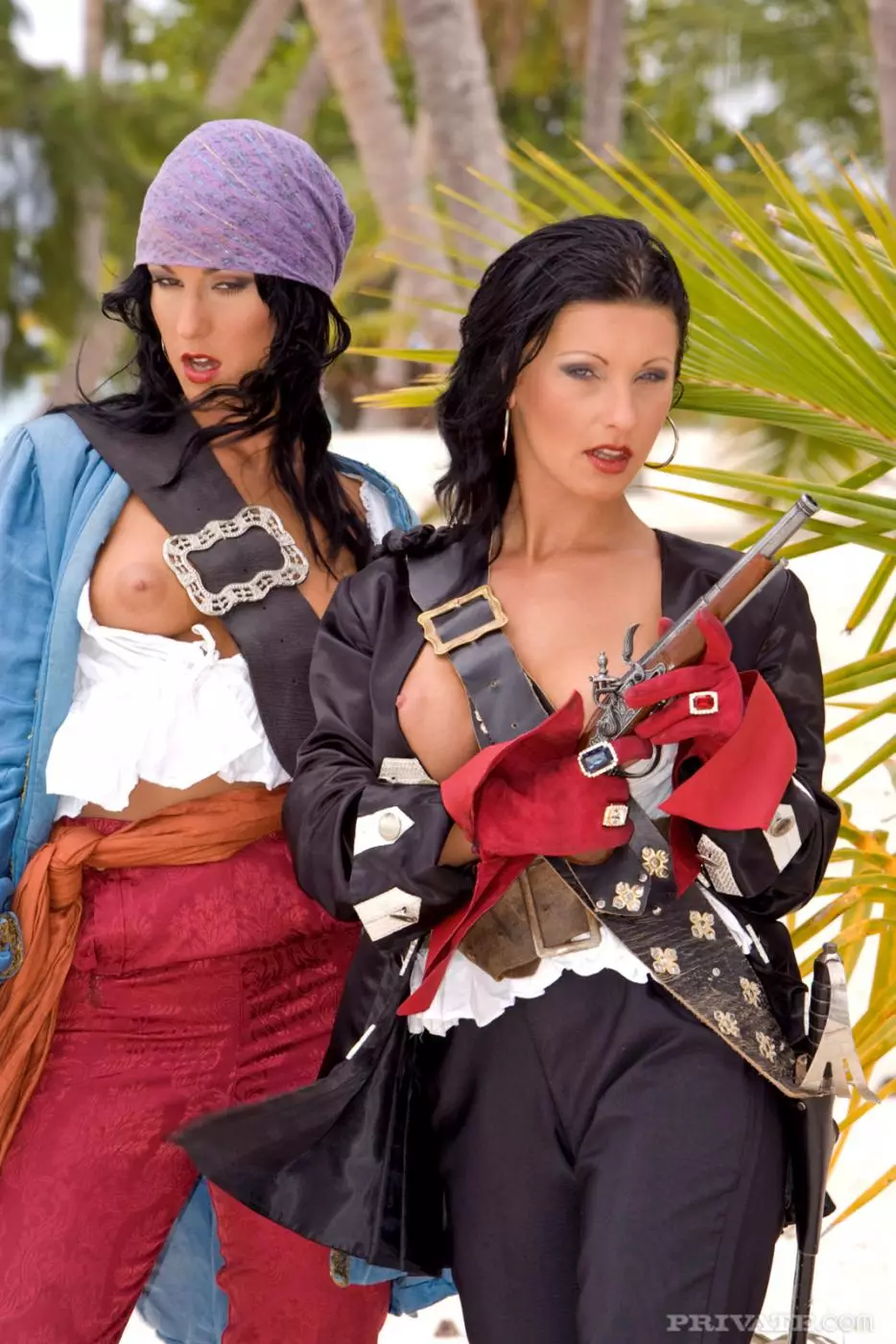 Две большегрудые черноволосые пиратки Nikki Rider и Simonne Style сосут члены на улице — Nikki Rider