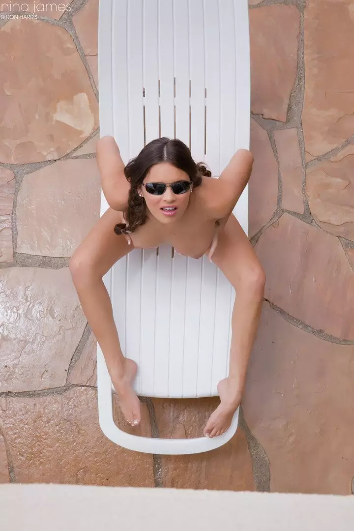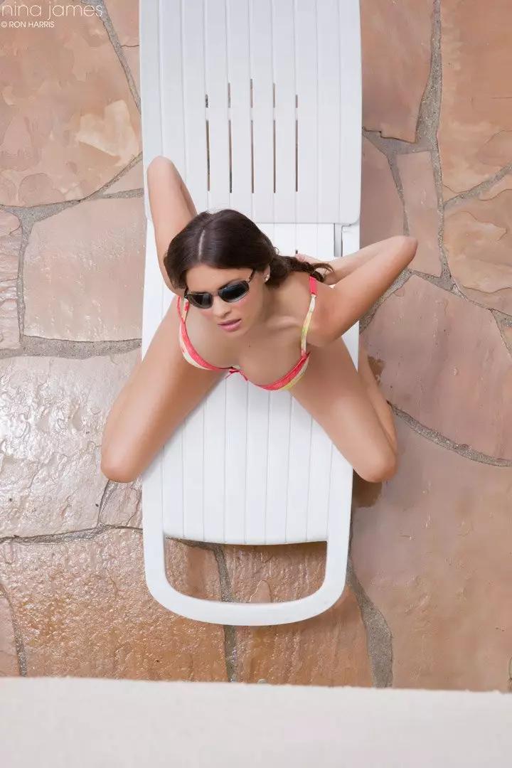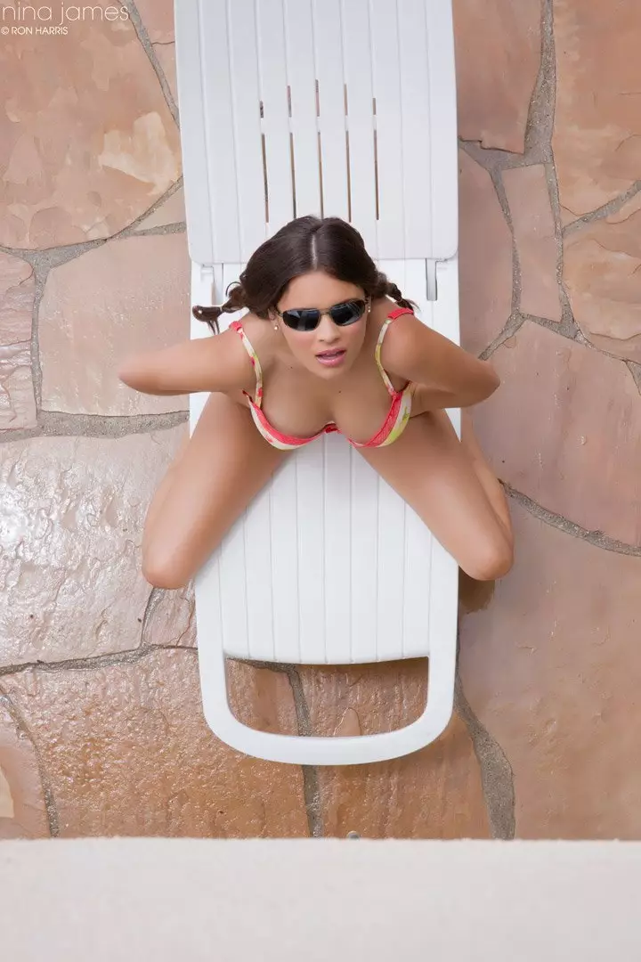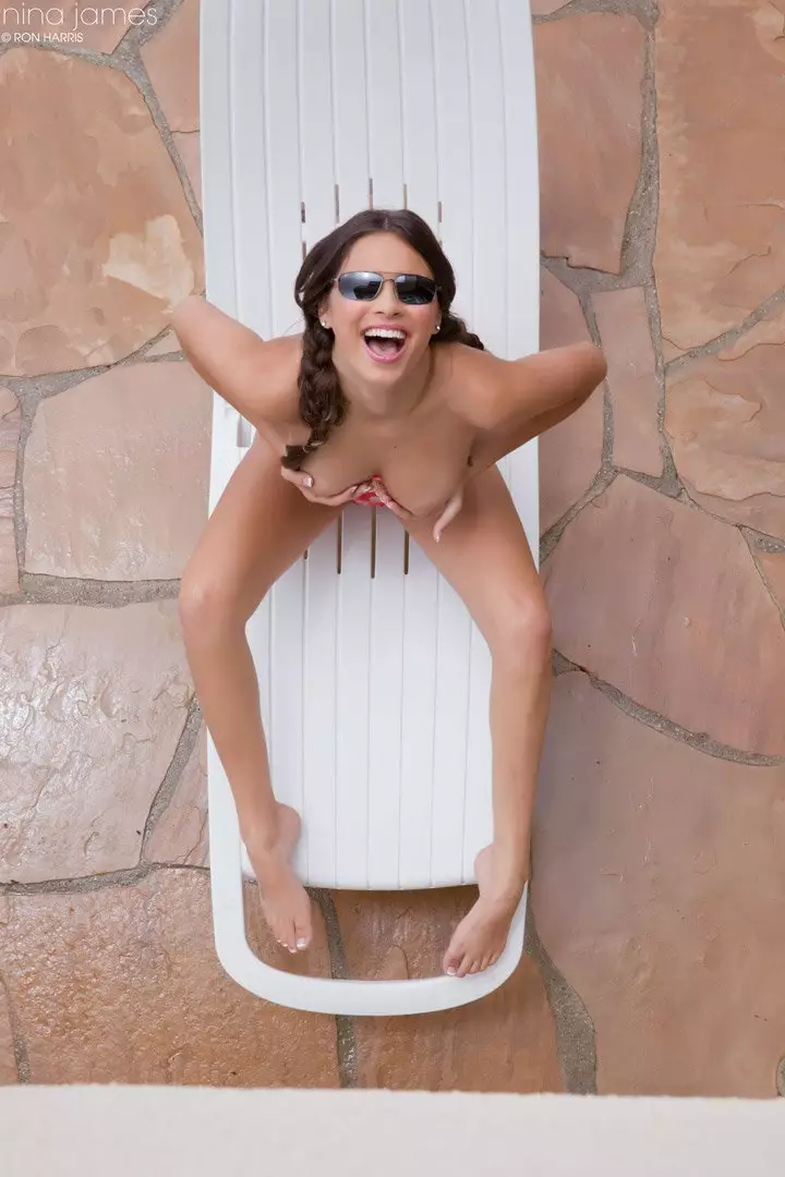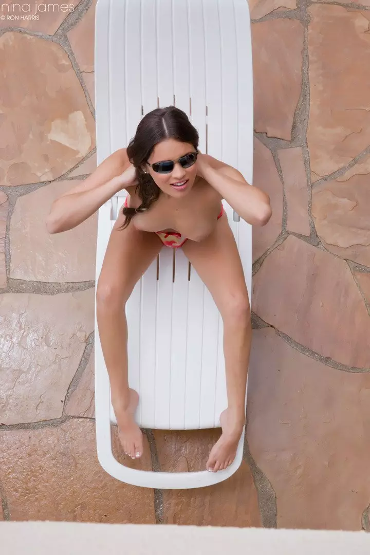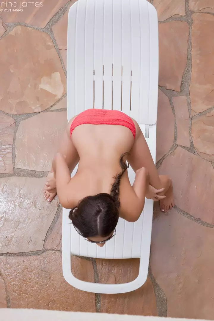 Кто-то подглядывает за Nina James, загорающей топлесс — Nina James
