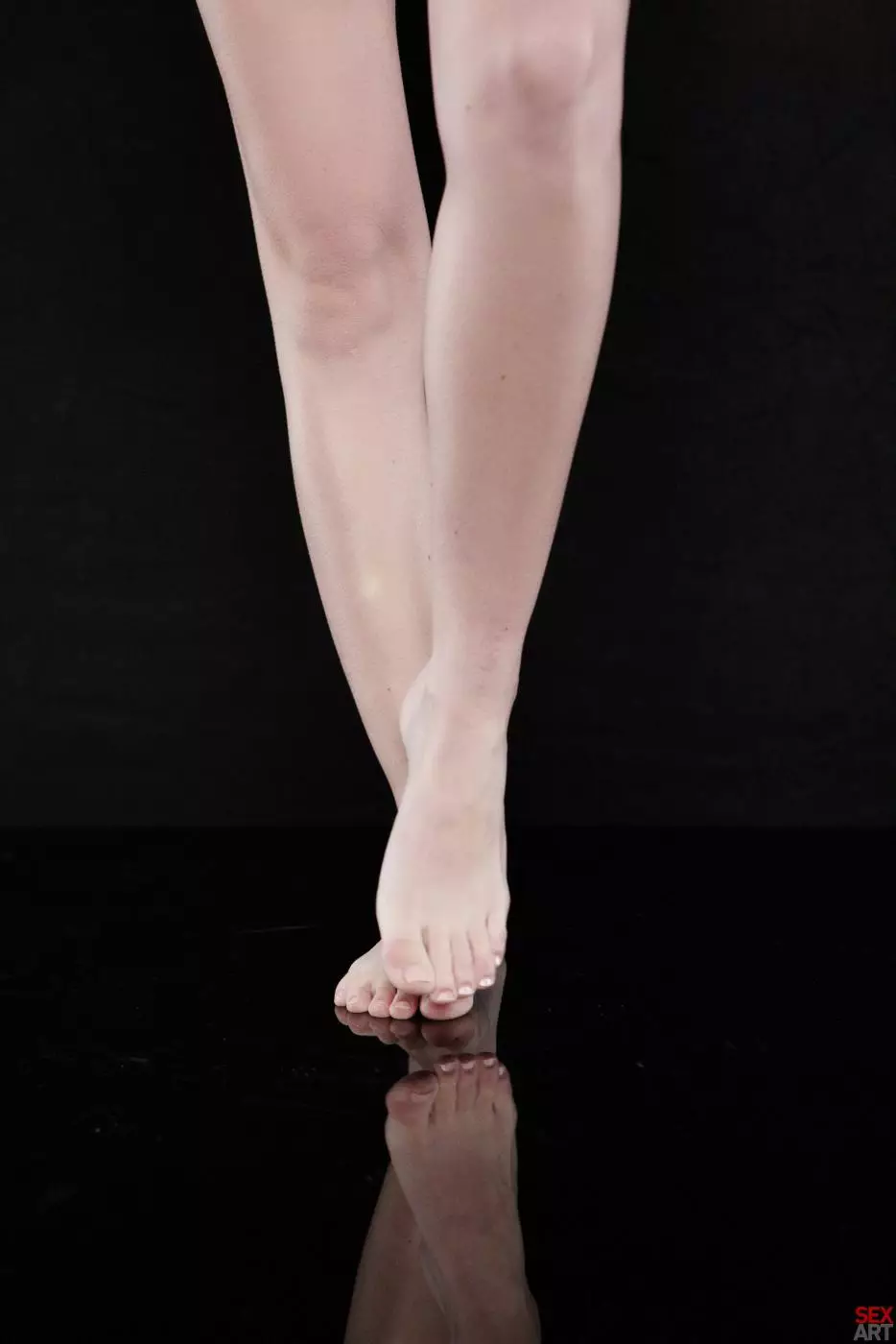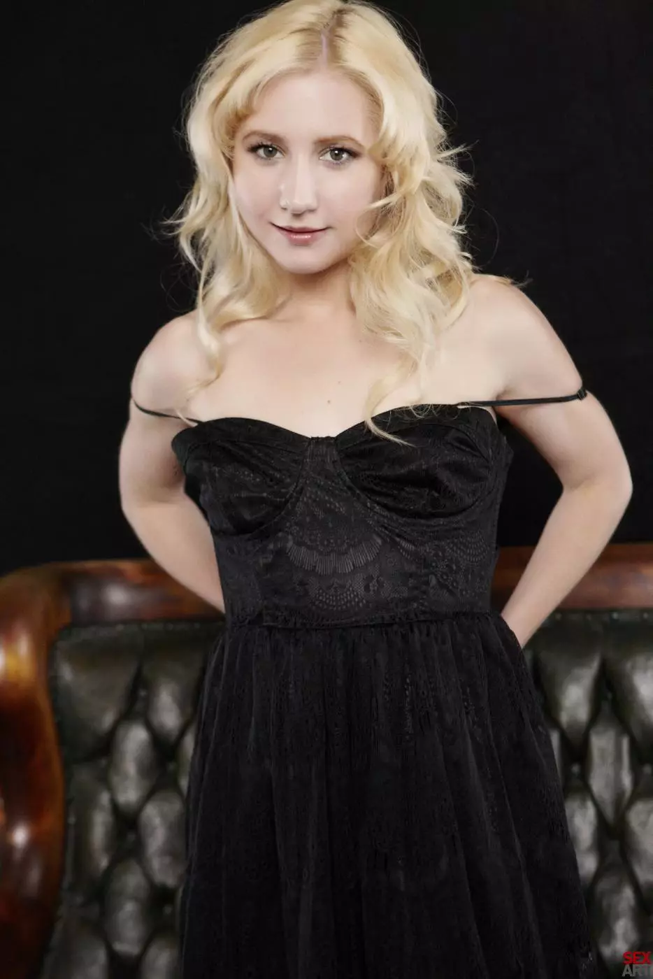 Блондинка, юная Odette Karups раздевается, играет с лифчиком и чулками и сексуально раздвигает киску — Odette Karups