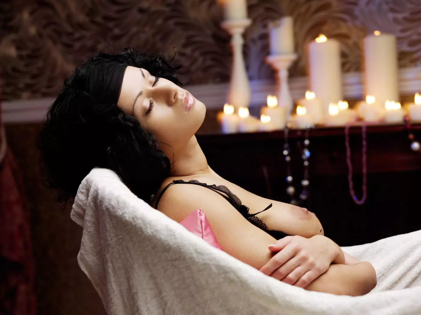 Сисястая малышка Pammie Lee демонстрирует красивую волосатую киску между ножек в черных чулочках — Pammie Lee