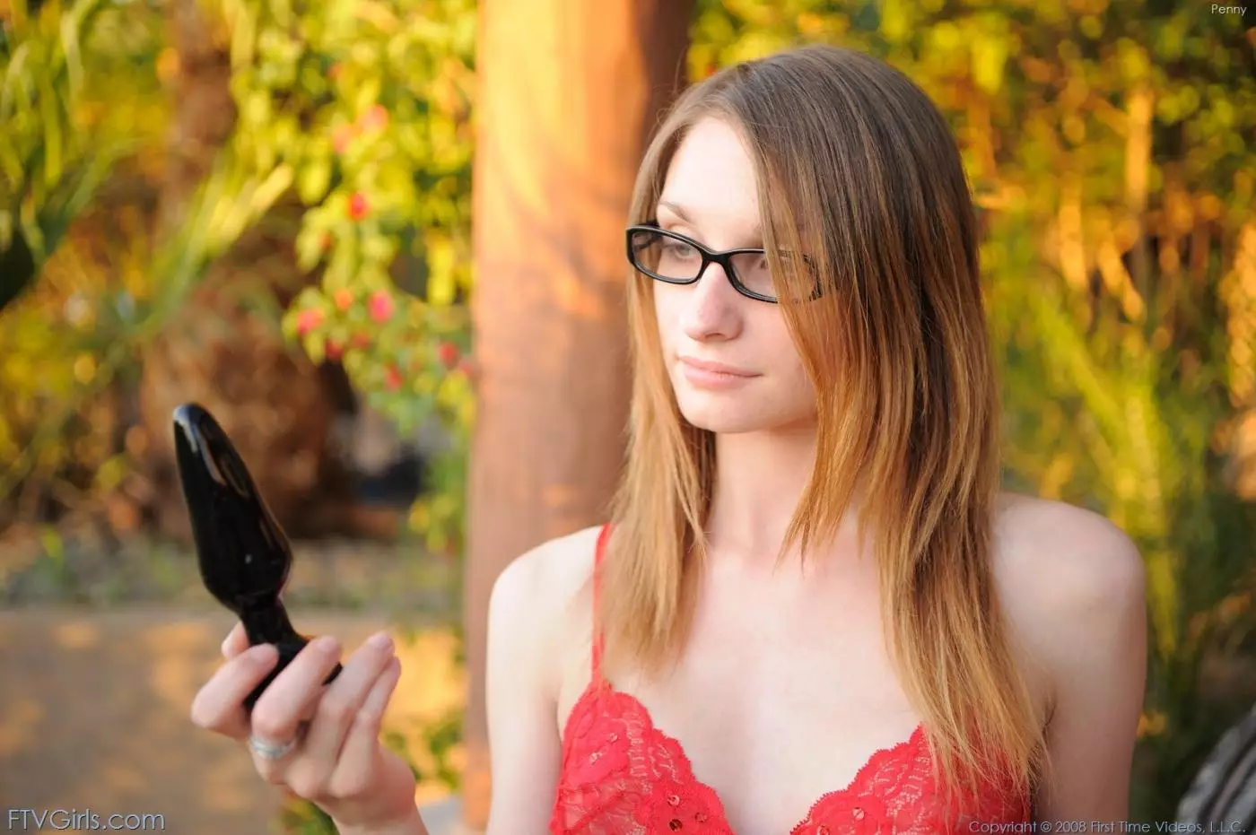 Бледная малышка в очках Penny FTV снимает свое красное белье и трахает игрушкой свою попку — Penny FTV