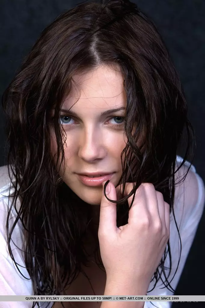 Знойная детка Quinn A выглядит классно в белой мужской рубашке и без трусиков — Quinn A