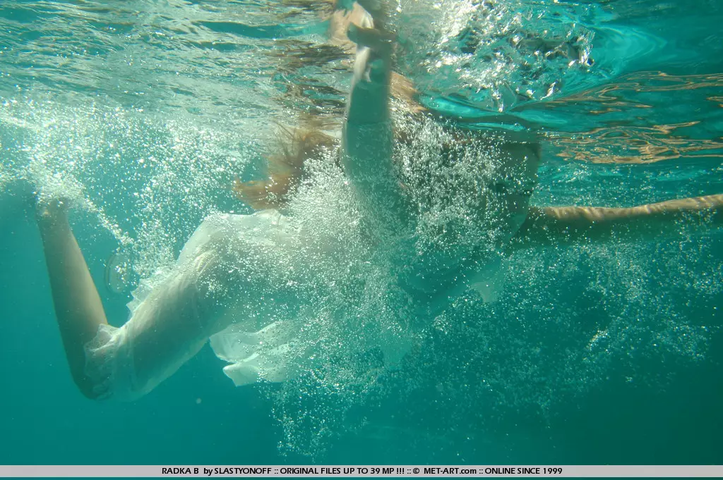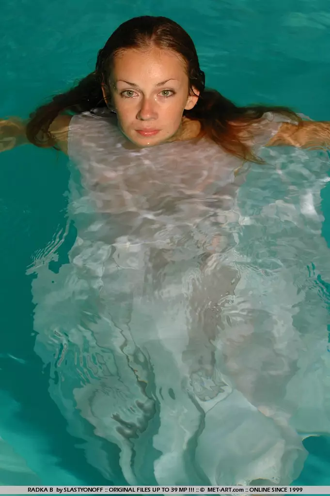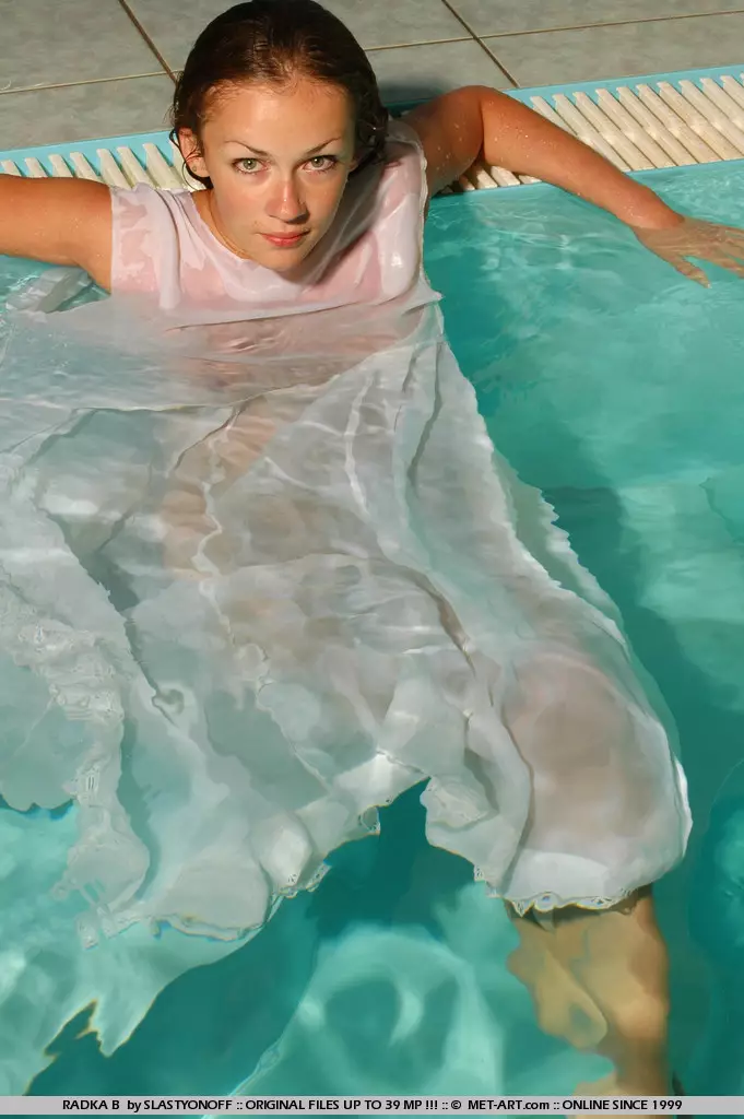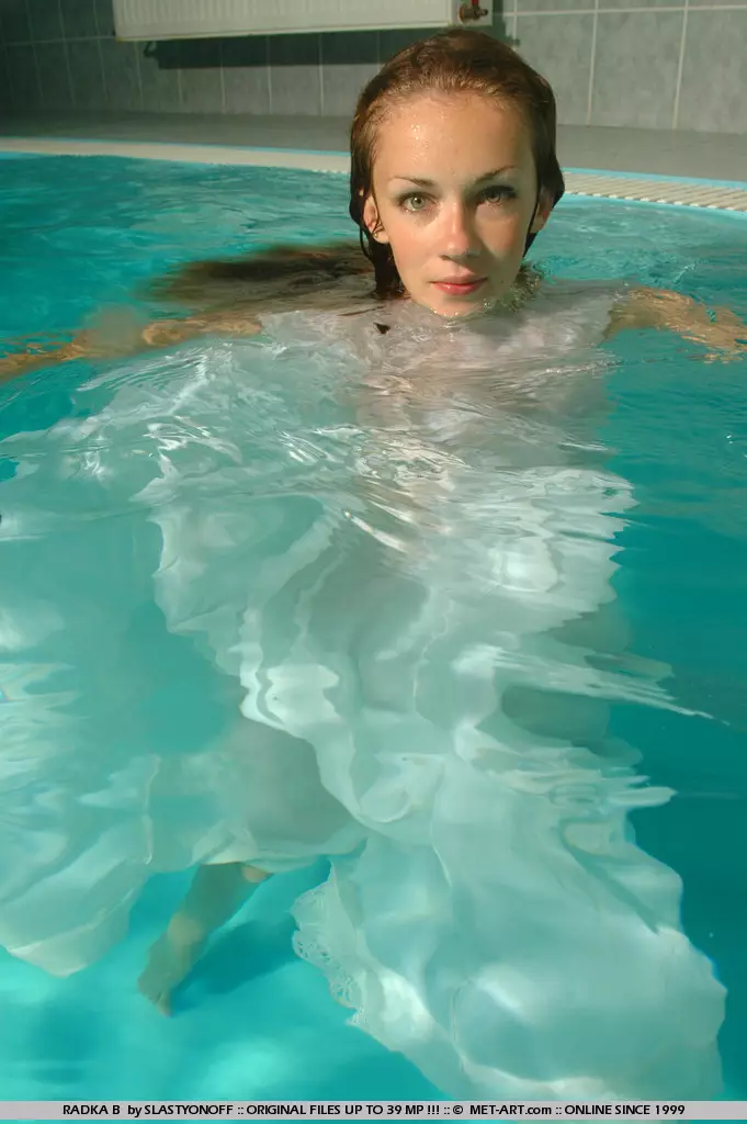 Милая Radka B снимает белое платье у бассейна — Radka B