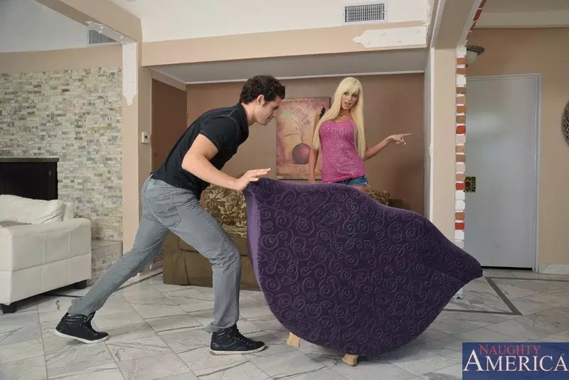 Молодой парень интенсивно трахается знойную блондинку Rikki Six, а потом кончает — Rikki Six