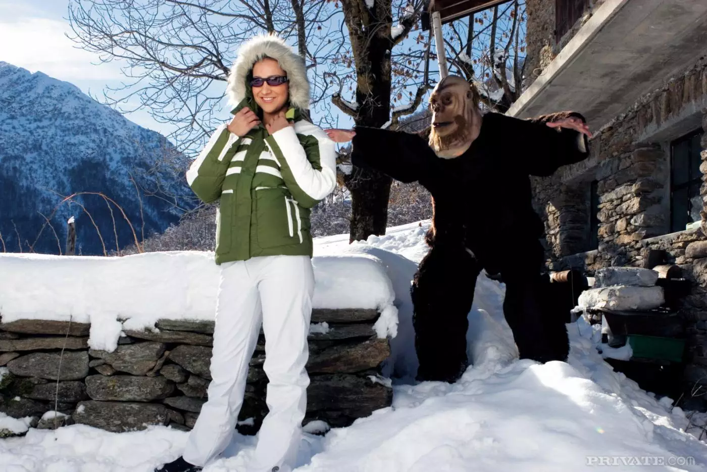 Стройную брюнетку Sabrina Sweet с маленькими сиськами и двумя косичками трахают во все дыры на снегу — Sabrina Sweet