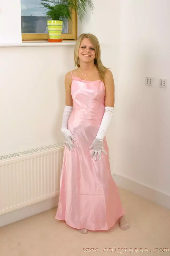 Sammy Jo в длинных белых перчатках и длинном розовом платье, скрывающем убийственно восхитительное нижнее белье — Sammy Jo